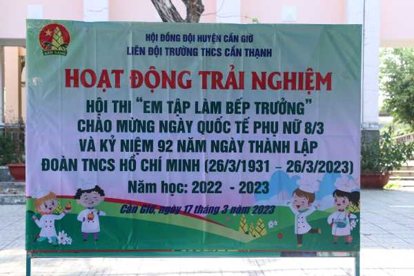 Thực hiện Kế hoạch giáo dục năm học 2022-2023, Trường THCS Cần Thạnh phối hợp Liên Đội tổ chức các hoạt động chào mừng kỷ niệm Ngày Quốc tế Phụ nữ 08/3, đồng thời tạo cho học sinh sân chơi trải nghiệm "Nấu ăn". Qua đó, giúp học sinh có thêm kỹ năng nấu các món ăn đơn giản phục vụ cho gia đình hằng ngày. Hội thi diễn ra sôi nổi và được đông đảo học sinh hưởng ứng. Ban giám khảo đã chấm và chọn ra các lớp xuất sắc trong quá trình nấu và trưng bày sản phẩm.