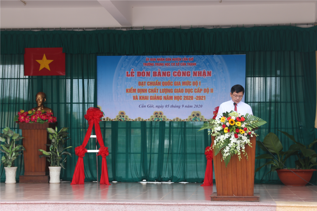 Thực hiện Kế hoạch Ngày toàn dân đưa trẻ đến trường, Trường THCS Cần Thạnh đã lồng ghép tổ chức Lễ đón nhận Bằng công nhận